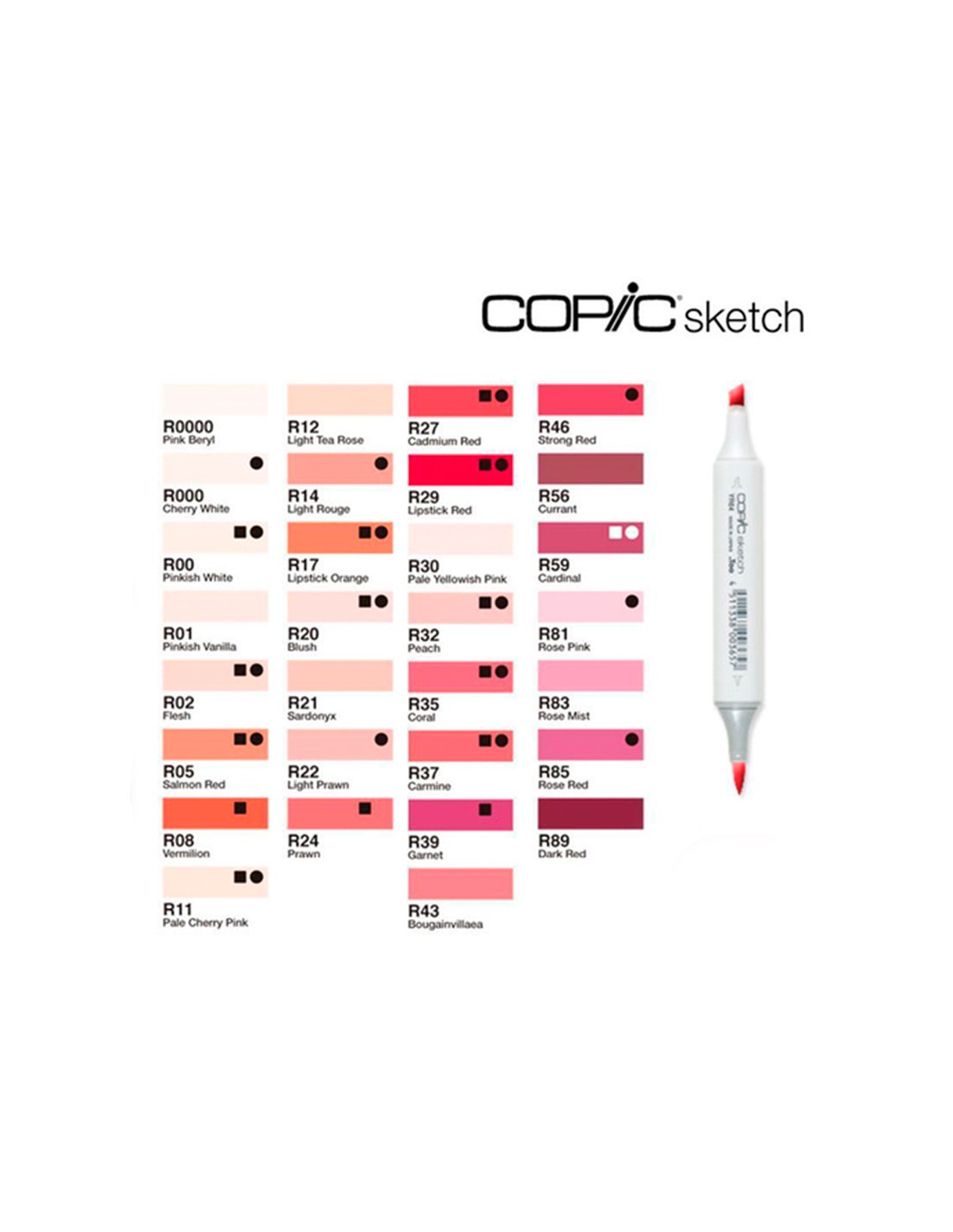 Copic Sketch es el marcador gráfico más vendido, utilizado principalmente por los profesionales creativos en muchos campos del diseño, la ilustración y las bellas artes. Presenta nuestras puntas flexibles Super Brush y Medium Broad, recargables y con un diseño ovalado ergonómico y tapones con código de colores.
