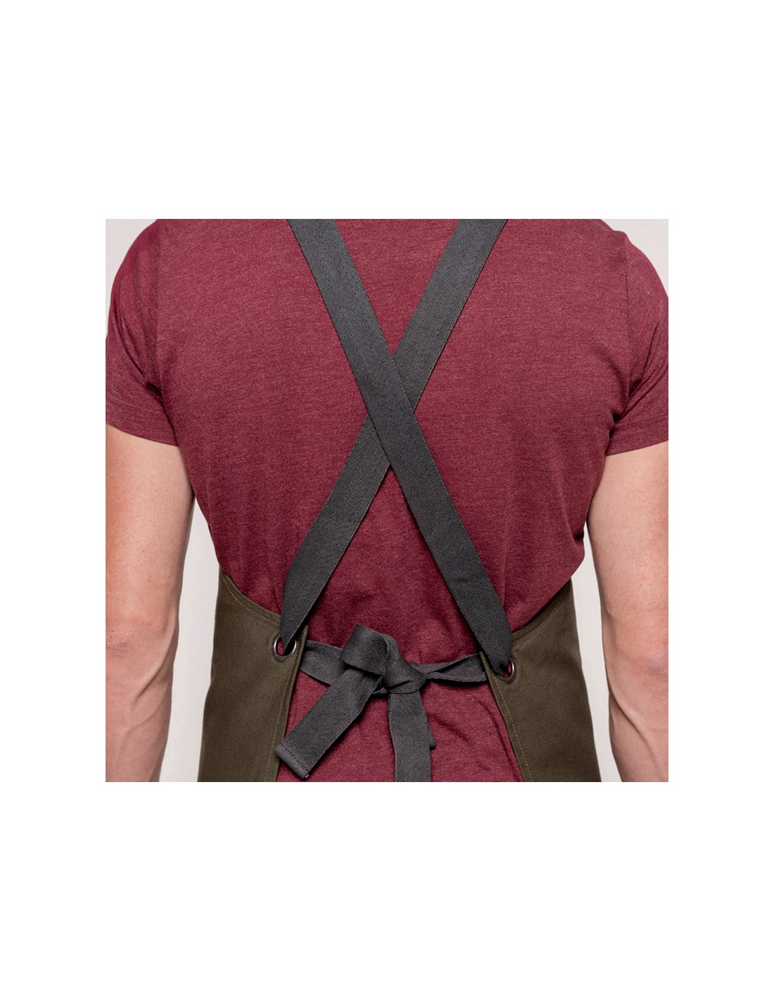 Delantal fabricado con 100% Algodón orgánico. Certificado OCS100 (Organic Content Standard) emitido por Ecocert Greenlife. Tejido canvas muy resistente. Correas tejido espiga de algodón que se cruzan en la espalda y pasan por ojales de metal en la cintura. Bolsillo delantero 30 cm x 20 cm. (largo/ancho). Medida delantal: 90 cm x 76 cm (largo/ancho). El producto lleva un tratamiento especial que refleja un aspecto envejecido intencional en la prenda. El proceso efectuado da como resultado una variación de color ente los productos convirtiendo cada pieza en única.  Taalla única, Unisex.