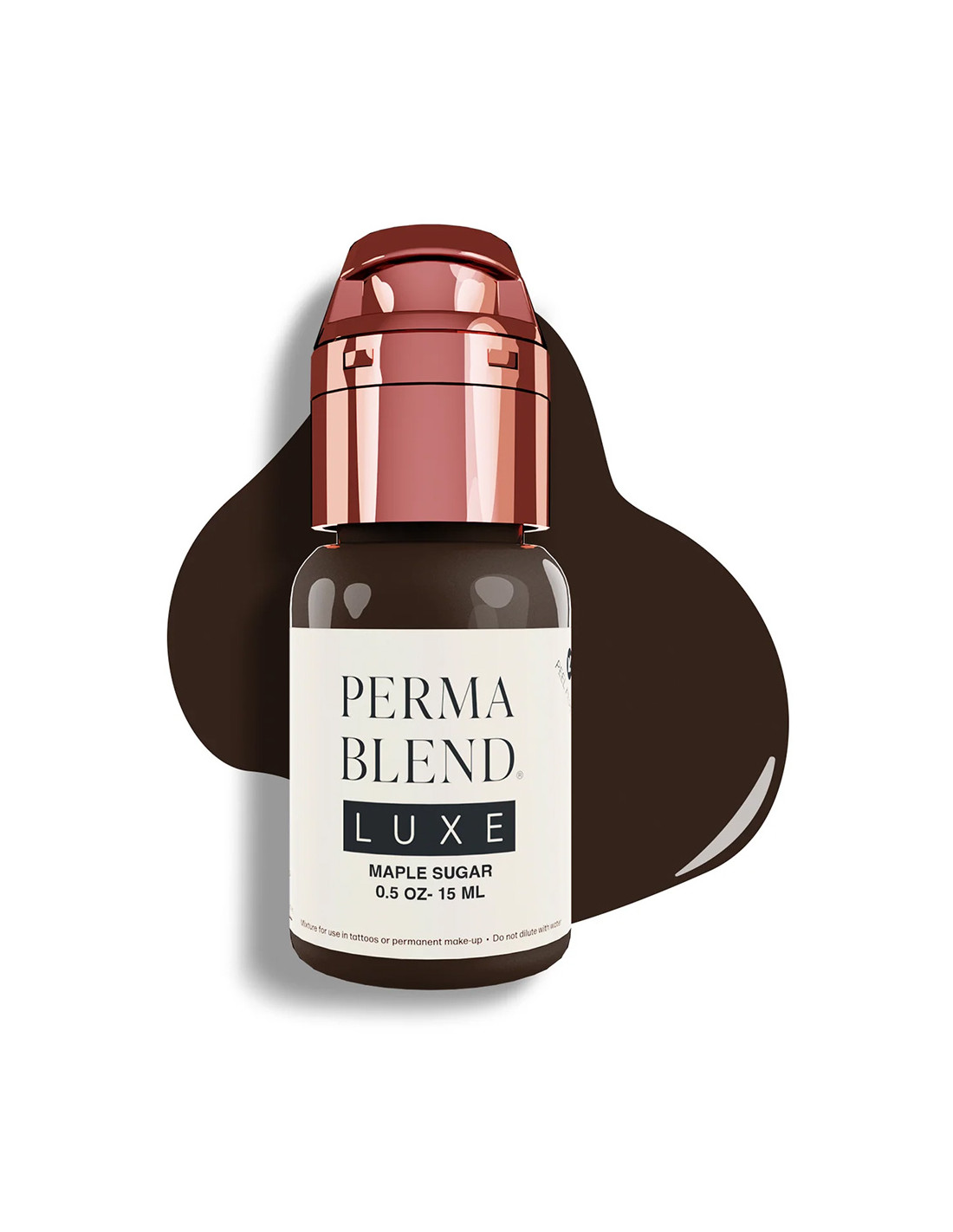 Perma Blend Luxe Maple Sugar es un marrón oscuro suavizado con tonos cálidos y terrosos, diseñado para ofrecer resultados naturales y estables tras la cicatrización. Forma parte de la LUXE Chocolate Collection, desarrollada junto a la artista Amina Sadiq, una línea creada especialmente para pieles melanadas y para lograr cejas con profundidad, armonía y un acabado impecable en una amplia diversidad de tonos de piel.