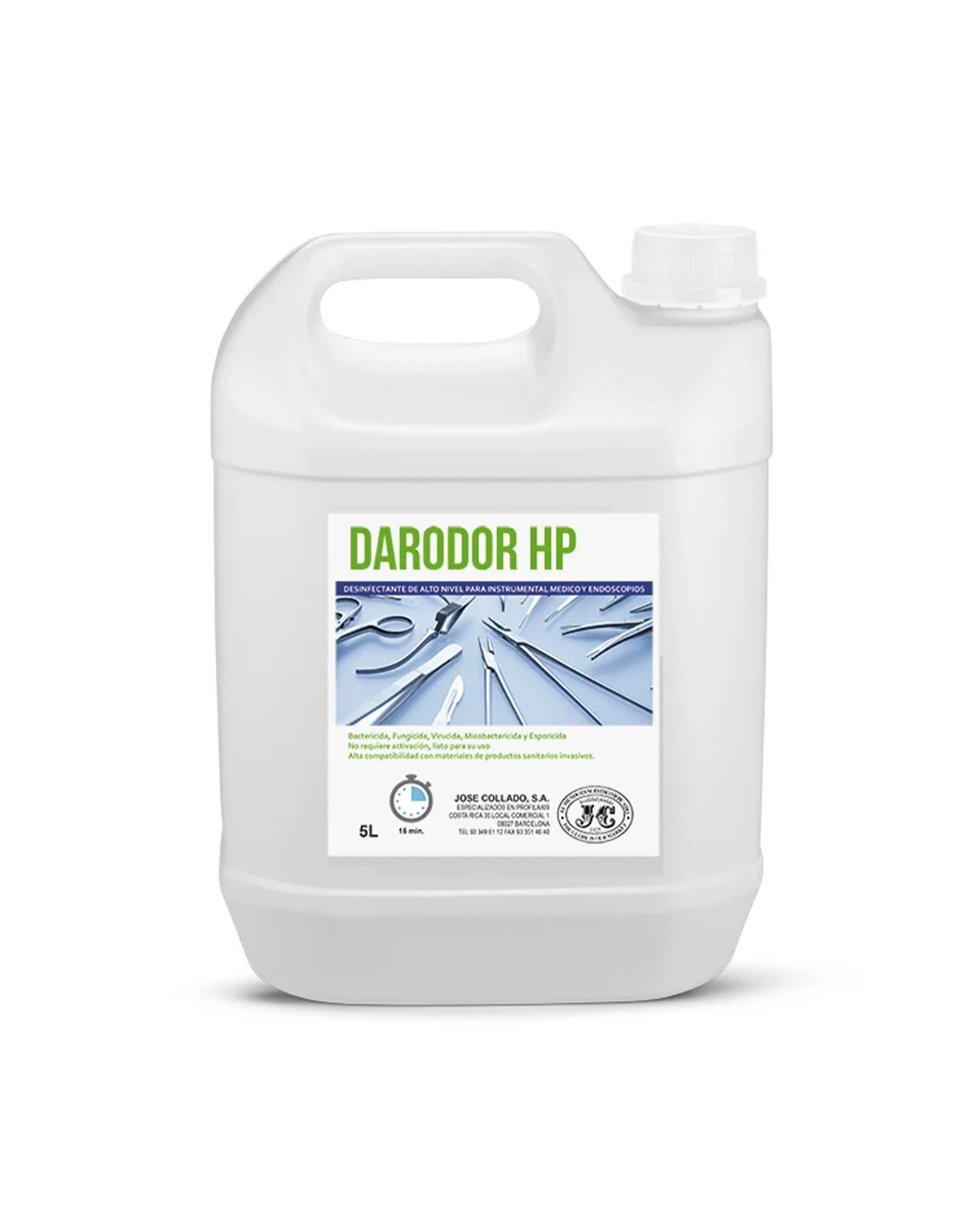JOSÉ COLLADODarodor HP es un desinfectante químico de alto nivel listo para usar, indicado para la desinfección por inmersión en frío de instrumental sanitario invasivo y material termosensible. Actúa en 15 minutos, sin dilución ni activación, garantizando máxima seguridad en clínicas y centros de micropigmentación.