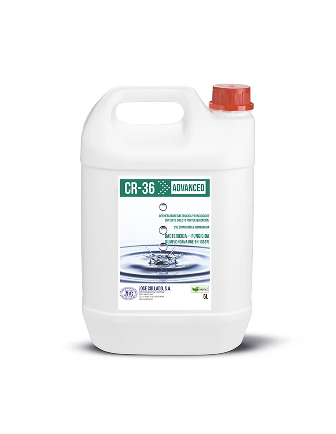 JOSÉ COLLADOCR-36 Advanced 5L es un desinfectante profesional de superficies listo para usar, ideal para centros de micropigmentación y estética avanzada. Actúa rápidamente, se seca sin dejar residuos y ofrece eficacia certificada frente a bacterias multirresistentes, hongos y virus envueltos.