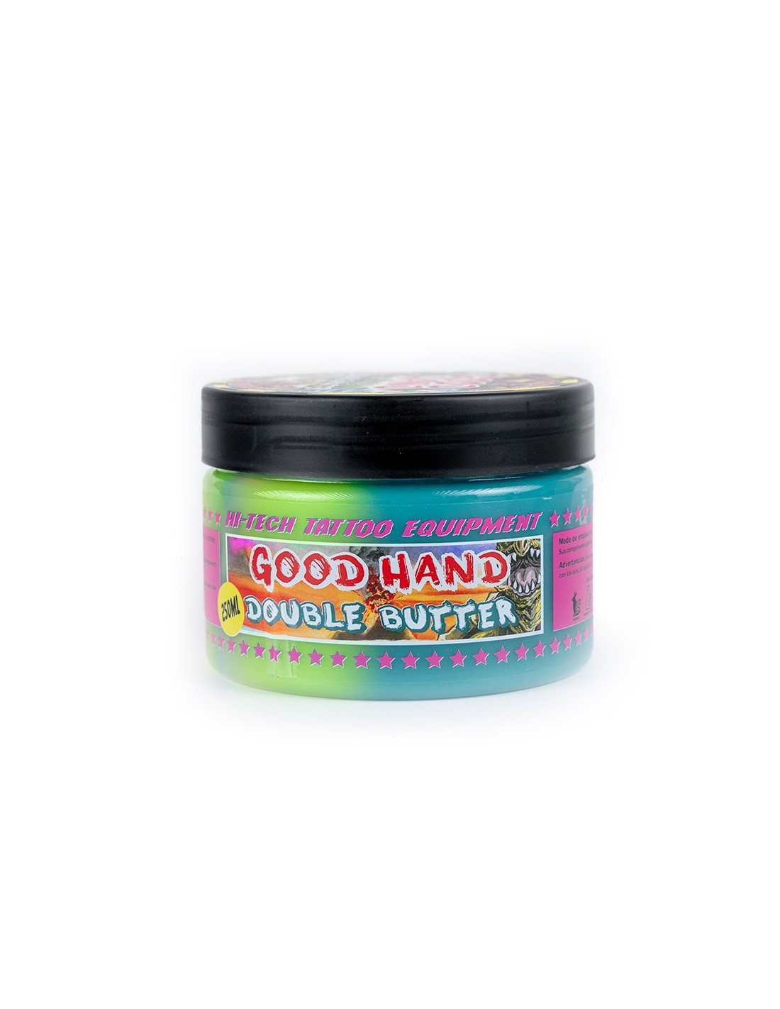 Esta Doble Manteca de Good Hand es una manteca única. Su combinación de colores e ingredientes la convierten en la mejor manteca jamás creada para su uso durante el proceso de tatuaje. Tiene una textura agradable, suave y untuosa, pero con la consistencia adecuada para que no se derrita. Se puede aplicar sobre la piel durante el proceso para hidratarla, evitar irritaciones y, al mismo tiempo, cerrar rápidamente los poros para que los colores parezcan más intensos y reales.