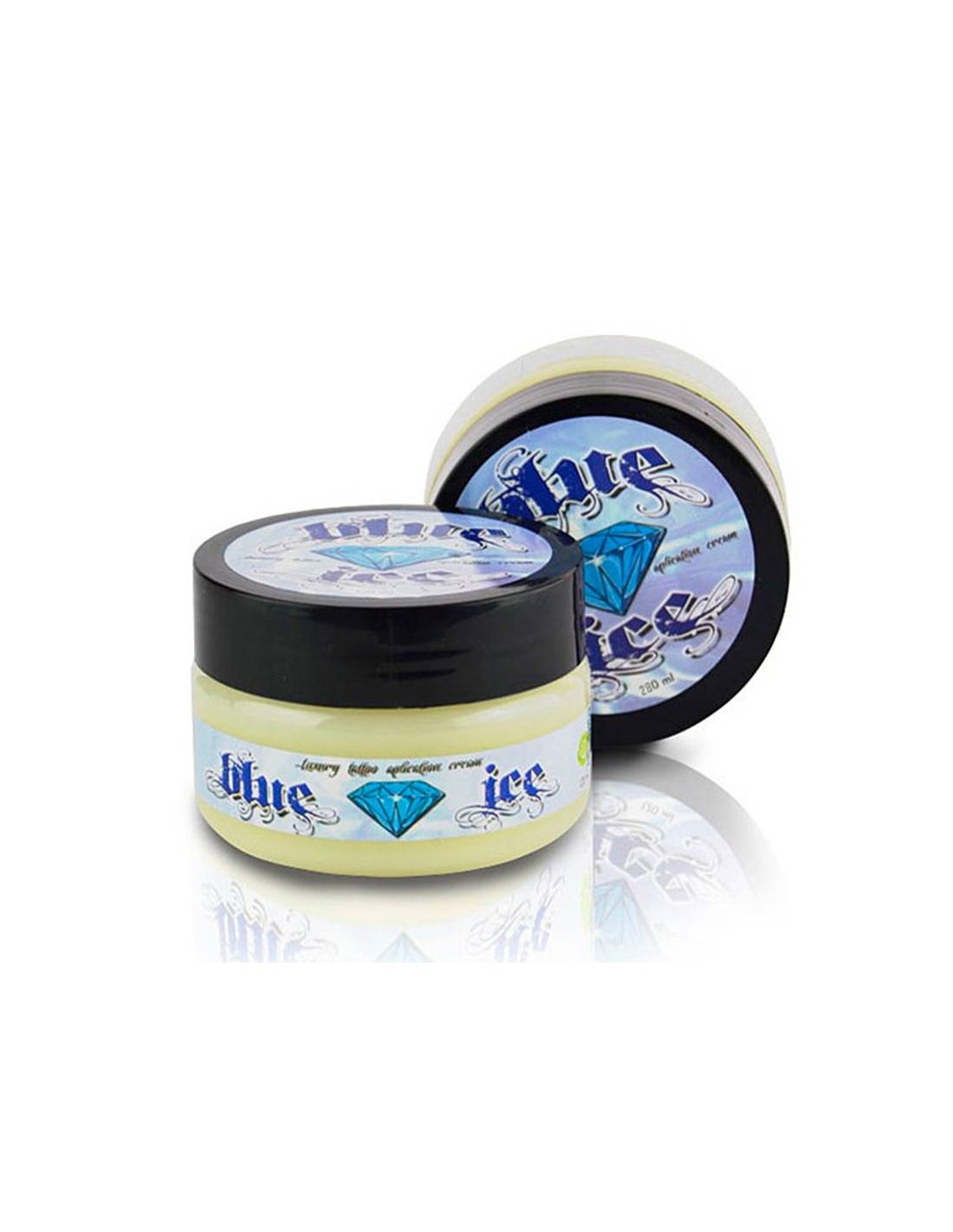 Blue Ice evita que la piel se manche en exceso con la tinta mientras se tatúa, facilita el deslizamiento del guante, mantiene mucho más tiempo el calco y evita en gran medida que se mezclen los colores oscuros con los claros.
