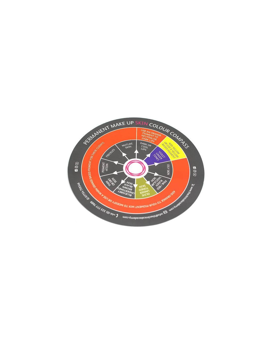 100% dedicated colour wheel for PMU and Microblading. Most colour charts are made for mixing paints and don't take into account the added problems that skin tones and skin challenges have on colour mixing, with this guide you'll be in the clear!