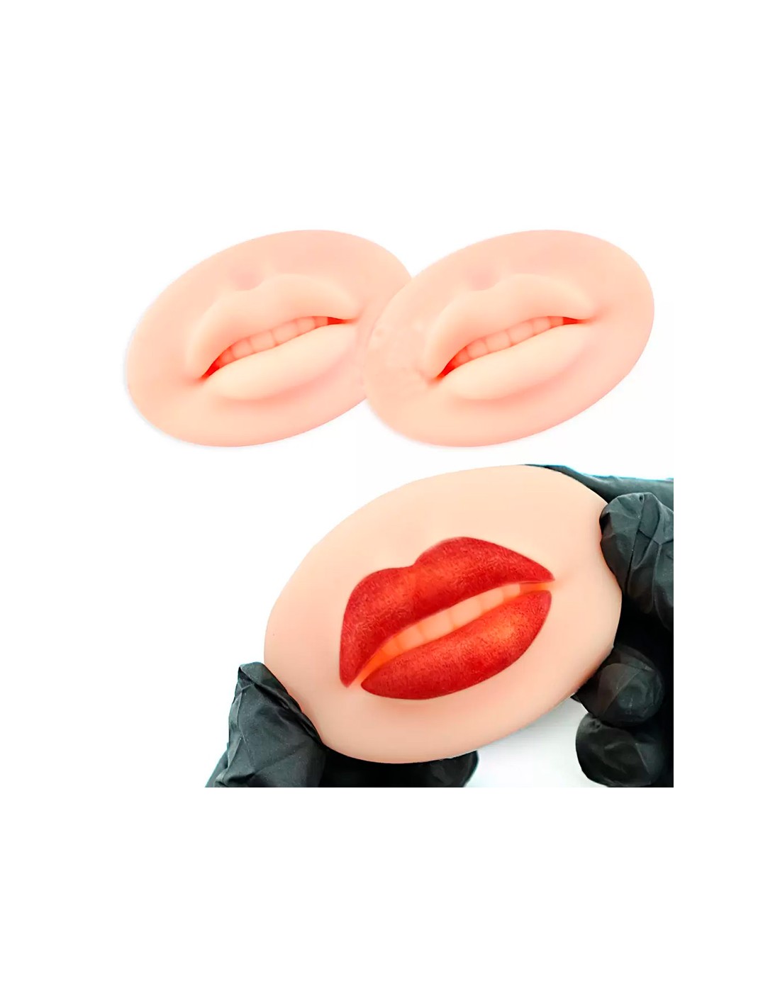 Practice skin for permanent lip make-up made of 100% 3D silicone, soft and easy to colour. Available in the following colours: light, medium and dark skin.