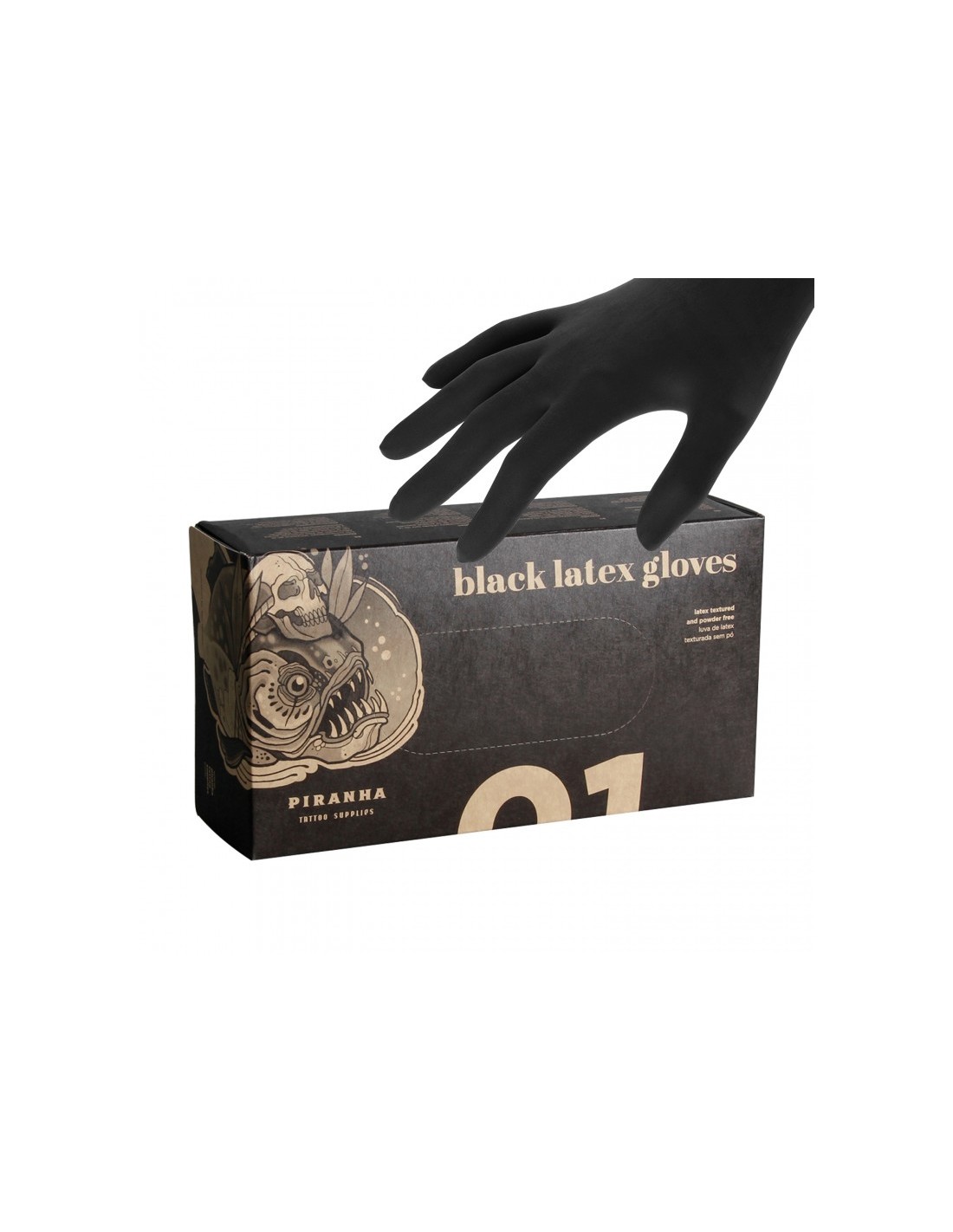 Piranha black latex gloves are known for their good grip, strength and elasticity. These powder free latex gloves are ideal for any procedure. Available in a box of 100 units / 50 pairs.