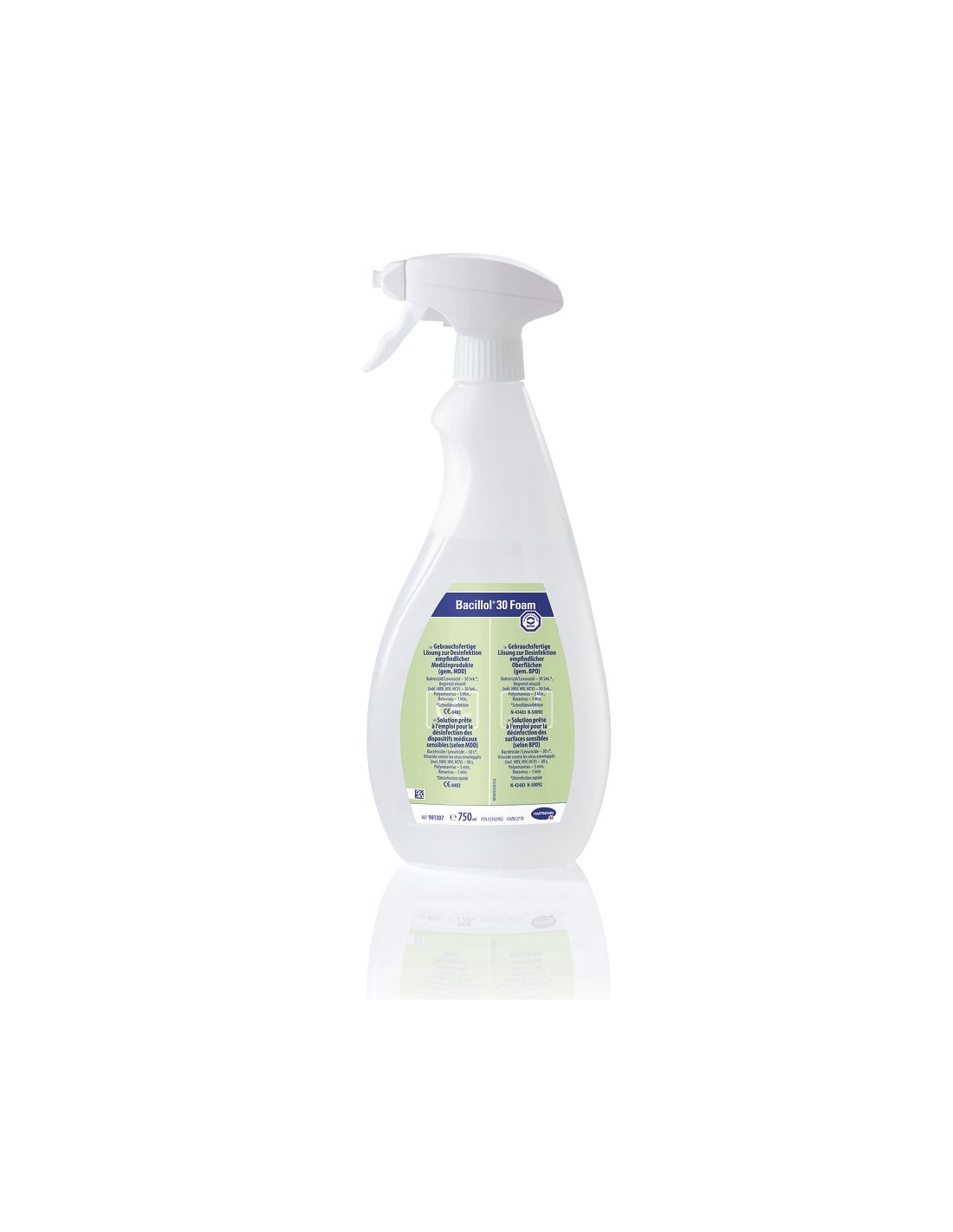 Quick disinfectant in foam spray format, contains 30% alcohol and is perfectly compatible with all delicate surfaces (plexiglass, screens, surgical lights or ultrasound probes).