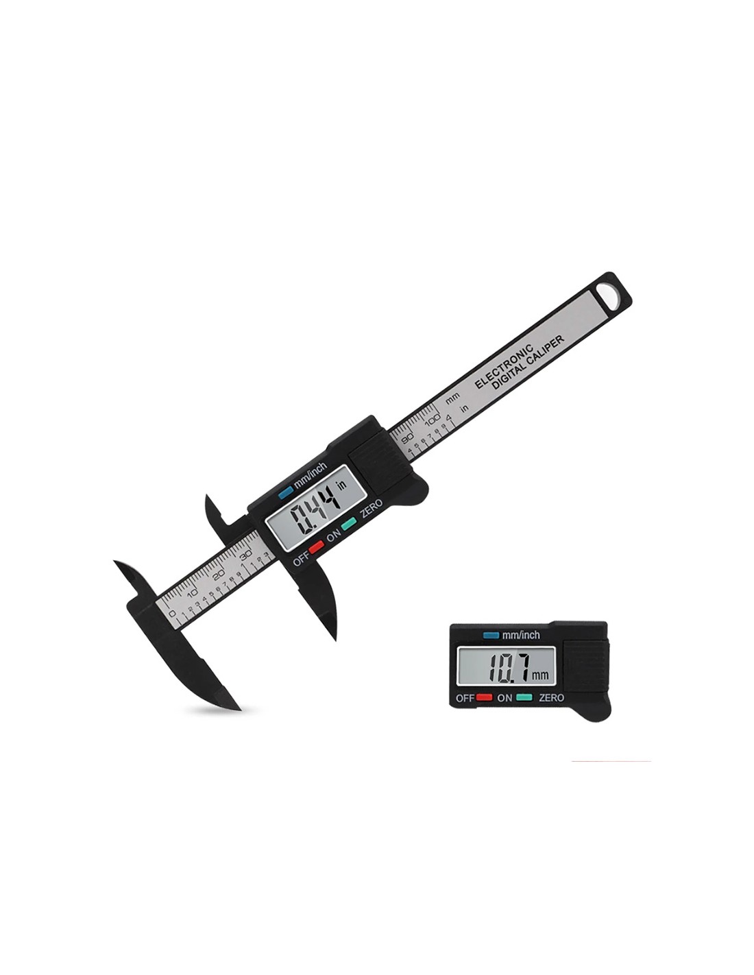 Digital caliper made of hardened environmental protection technical plastic with depth gauge and precision ground jaw. It has a good plastic body which is well balanced in terms of sliding and clamping to a given value. Measuring range: 0 - 6 inch / 0 - 150 mm; resolution: 0.005 inch / 0.1 mm; accuracy: ± 0.2 mm / 0.01 inch. Large, easy-to-read LCD display. It has two modes: inches and millimetres. You can zero it with an easy touch of a button and start a new measurement at any point on the scale. Ideal for precise measurements such as eyebrow design.