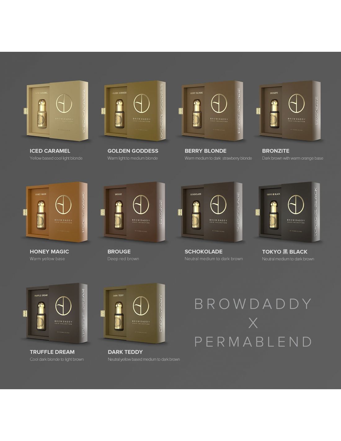 Brow Daddy misturou os seus conhecimentos e experiência directamente em cada pigmento e cada parte desta colecção, dando aos artistas a oportunidade de criar as mesmas experiências para os seus clientes que Brow Daddy criou e continua a criar para os seus.