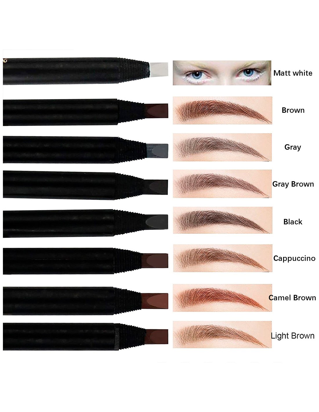 ????Water Profundidade e Duração Solitária: Pode desenhar sobrancelhas em forma de sobrancelhas, tingir sobrancelhas rapidamente. Sem desvanecer, manter a cor durante todo o dia. Criar a melhor maquilhagem de sobrancelhas. O lápis de sobrancelhas também pode evitar manchas de suor, água e lágrimas.