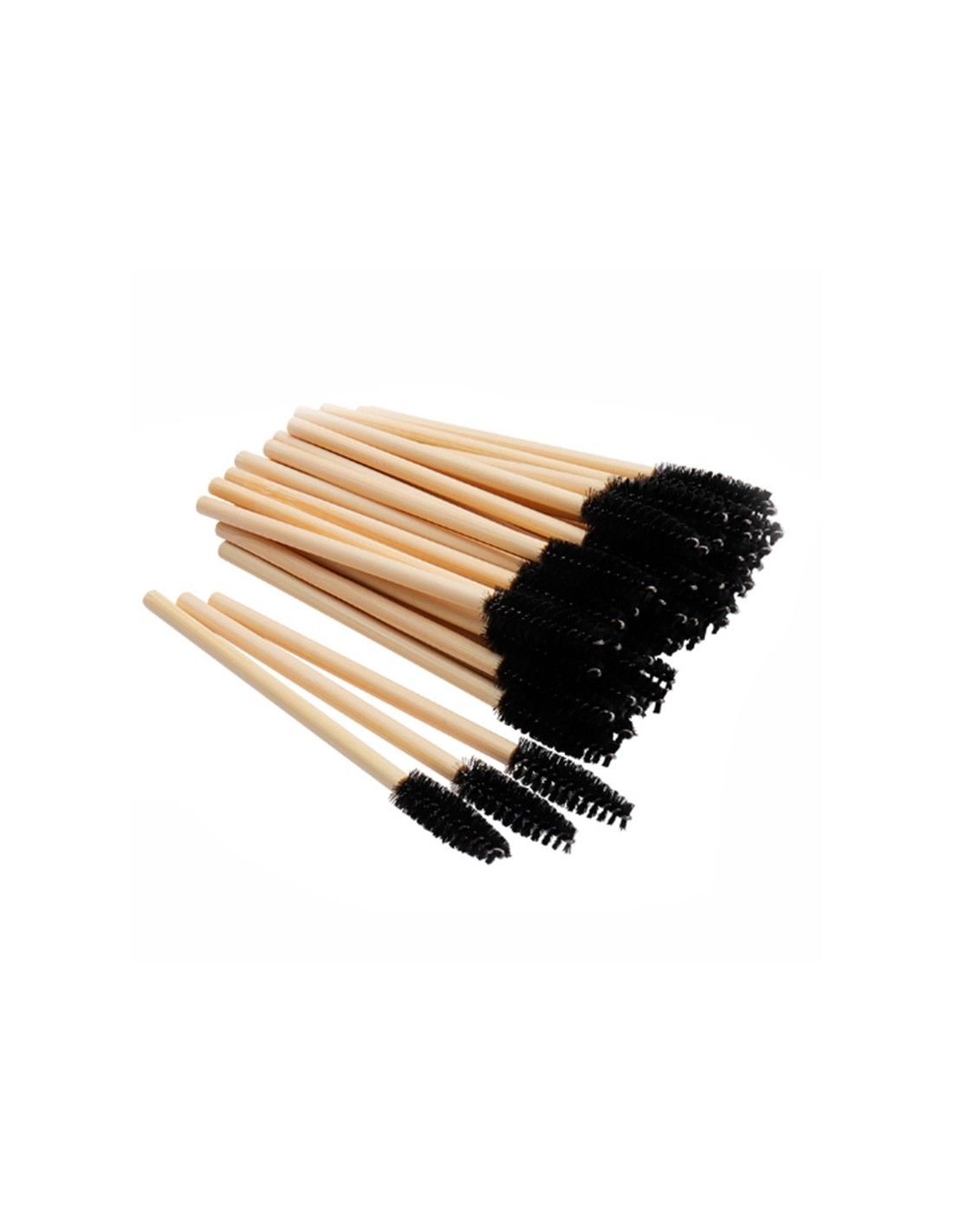 Pincel ecológico com aplicador de bambu e cerdas de nylon, perfeito para mostrar o detalhe do trabalho feito nas sobrancelhas. Pacote de 50 unidades.
