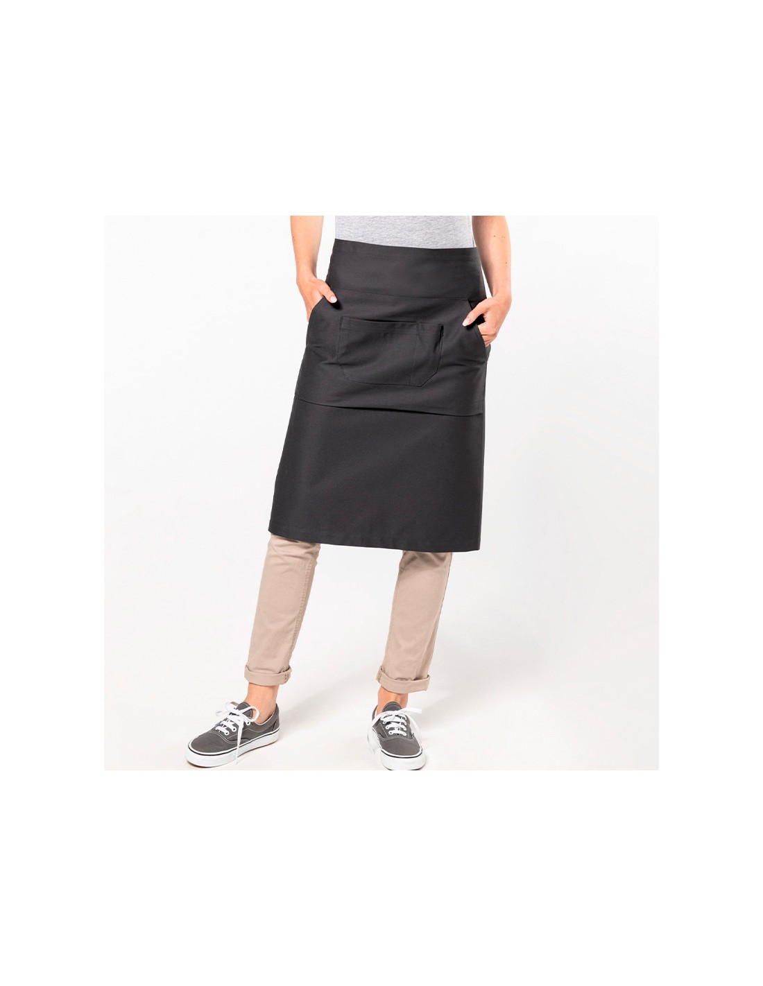 Avental 100% algodão. Lavagem doméstica a 60°C. 1 bolso grande de canguru e 1 bolso com compartimento duplo. Medidas: 90 cm de comprimento - 62,5 cm de largura. Cor de ganga: O produto tem um tratamento especial que reflecte um aspecto intencionalmente envelhecido. O processo realizado resulta numa variação de cor entre os produtos, tornando cada peça única. Certificado STANDARD 100 pela OEKO-TEX®N° CQ1007/8, IFTH.