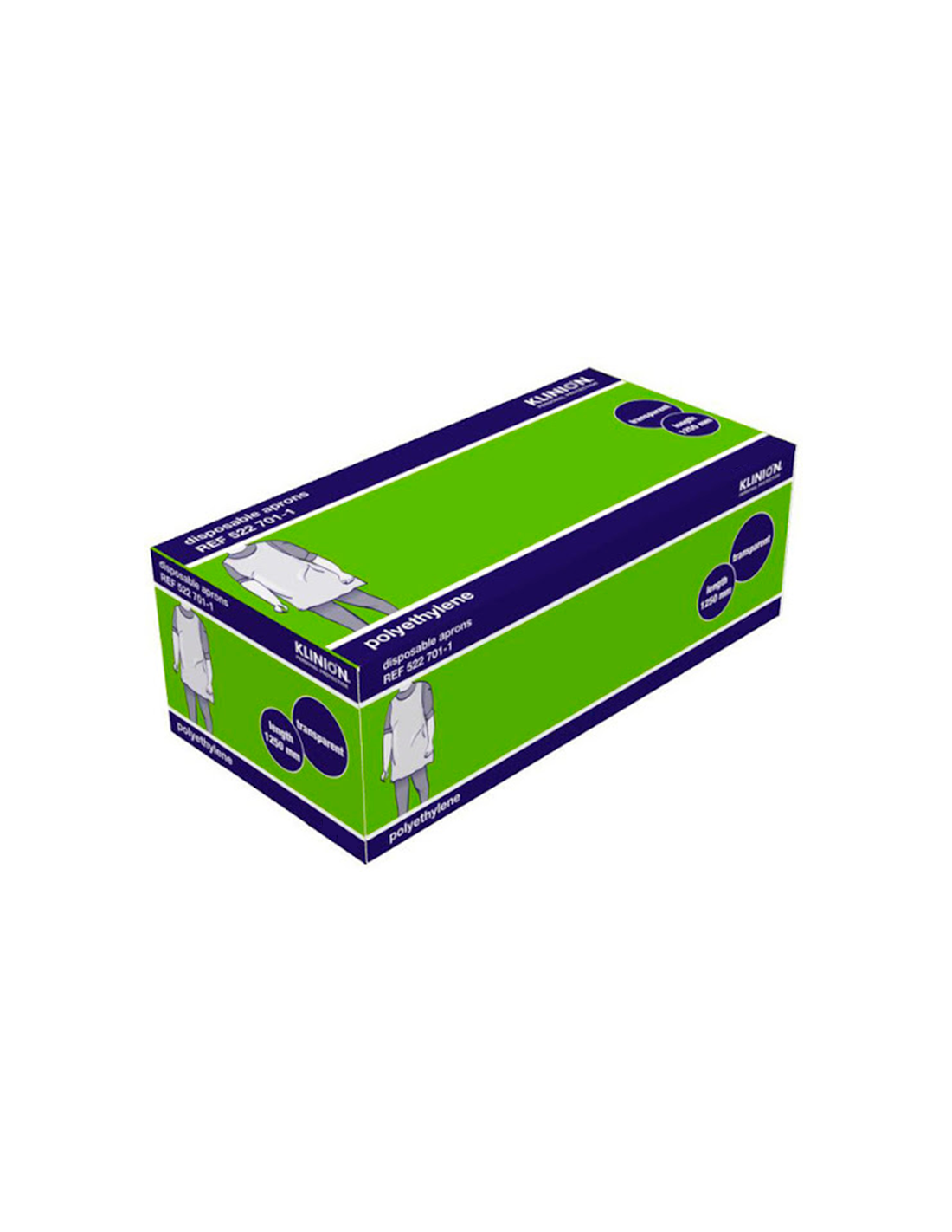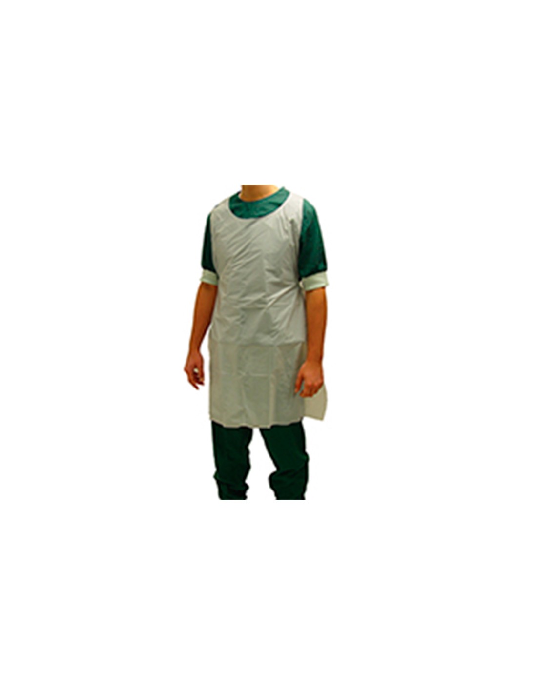 Embalagem de 100 aventais plásticos descartáveis cinzentos.