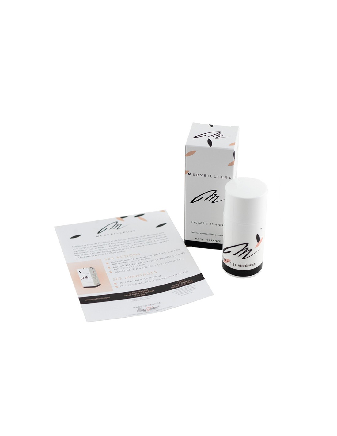 Este creme de tratamento posterior da Merveilleuse foi especificamente concebido para o sector da maquilhagem permanente. O creme é hidratante e sem fragrâncias. Um creme à base de pantenol que apoia a rápida reestruturação celular e é suavizante para a pele. A manteiga de carité contida no creme tem ingredientes activos como os caritenos A, B, C e D. Estes dão-lhe uma notável actividade fisiológica de reparação, hidratação e protecção da epiderme.