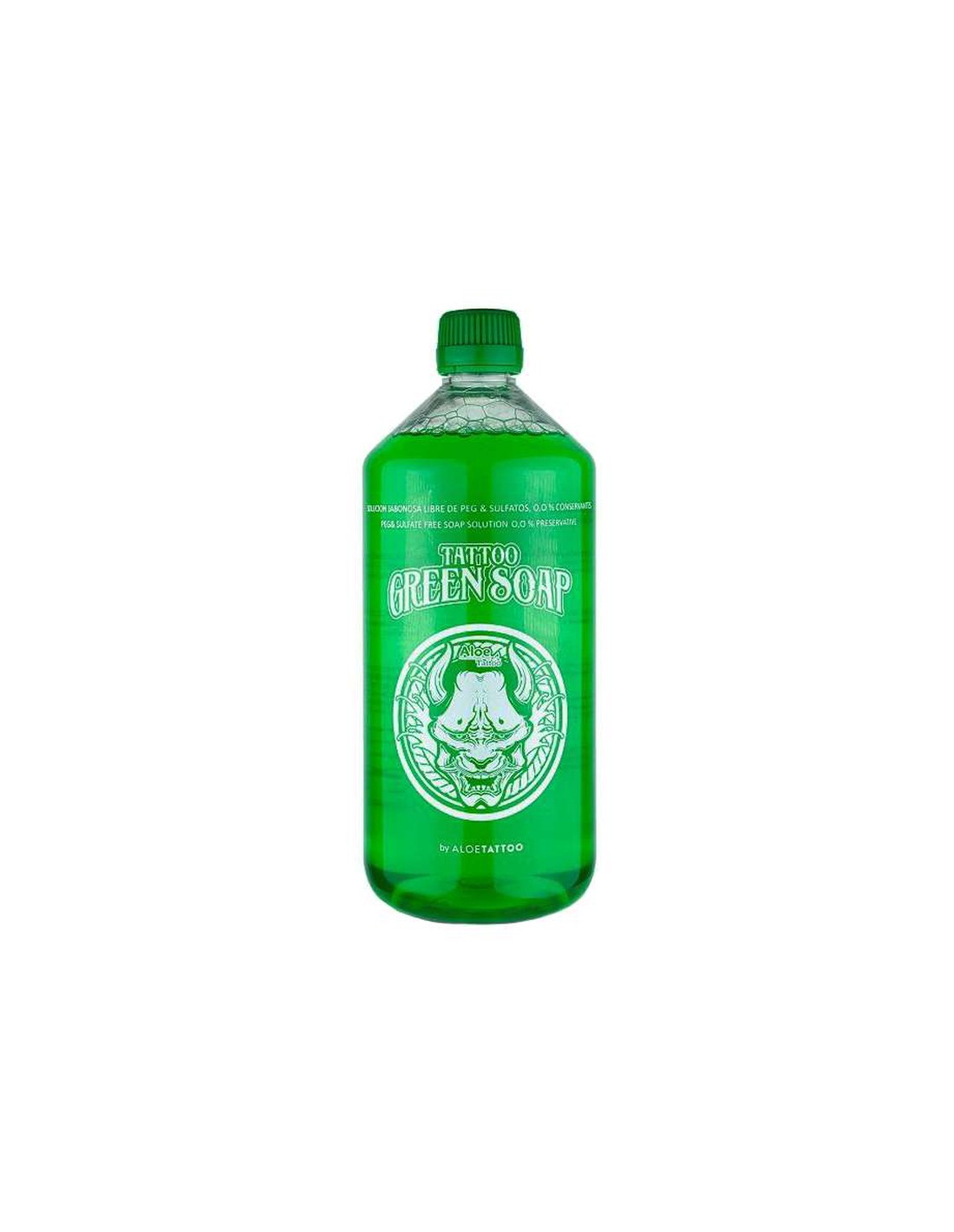 Tattoo Green Soap by Aloe Tattoo é uma solução de sabão de alta qualidade, sem sulfatos, com um pH eudérmico (5,5). Muito suave para a pele e com grande poder de limpeza para tintas, para serem utilizadas directamente, sem diluição, durante o processo de tatuagem.