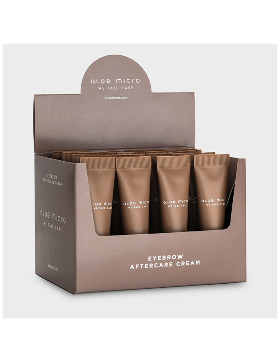 O Aloe Micro Eyebrow Aftercare Cream Display inclui 16 embalagens de 10 g cada, concebidas para proporcionar aos seus clientes cuidados pós-operatórios especializados e seguros após a micropigmentação das sobrancelhas.