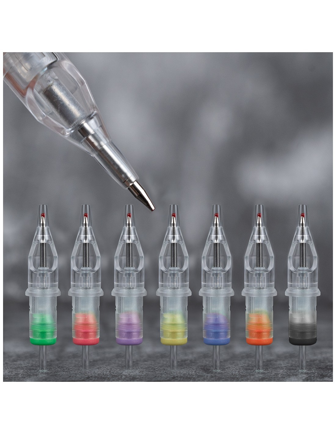 Cartucho de tatuagem e de micropigmentação com biros para praticar em papel ou pele sintética.