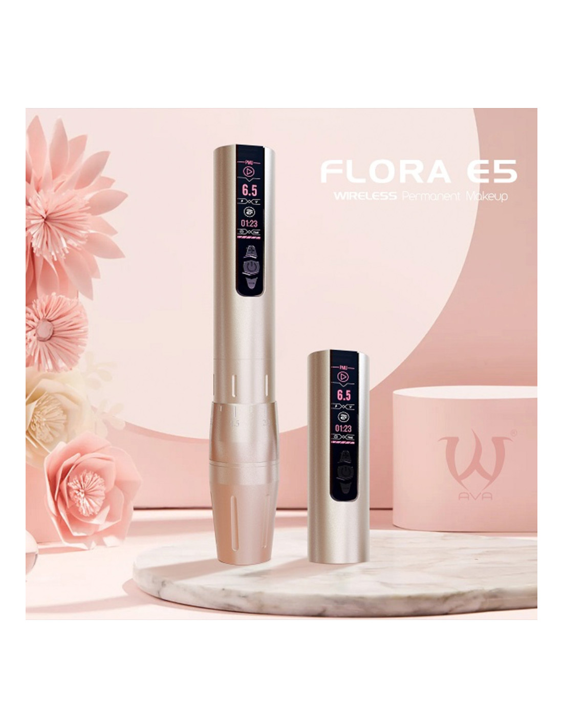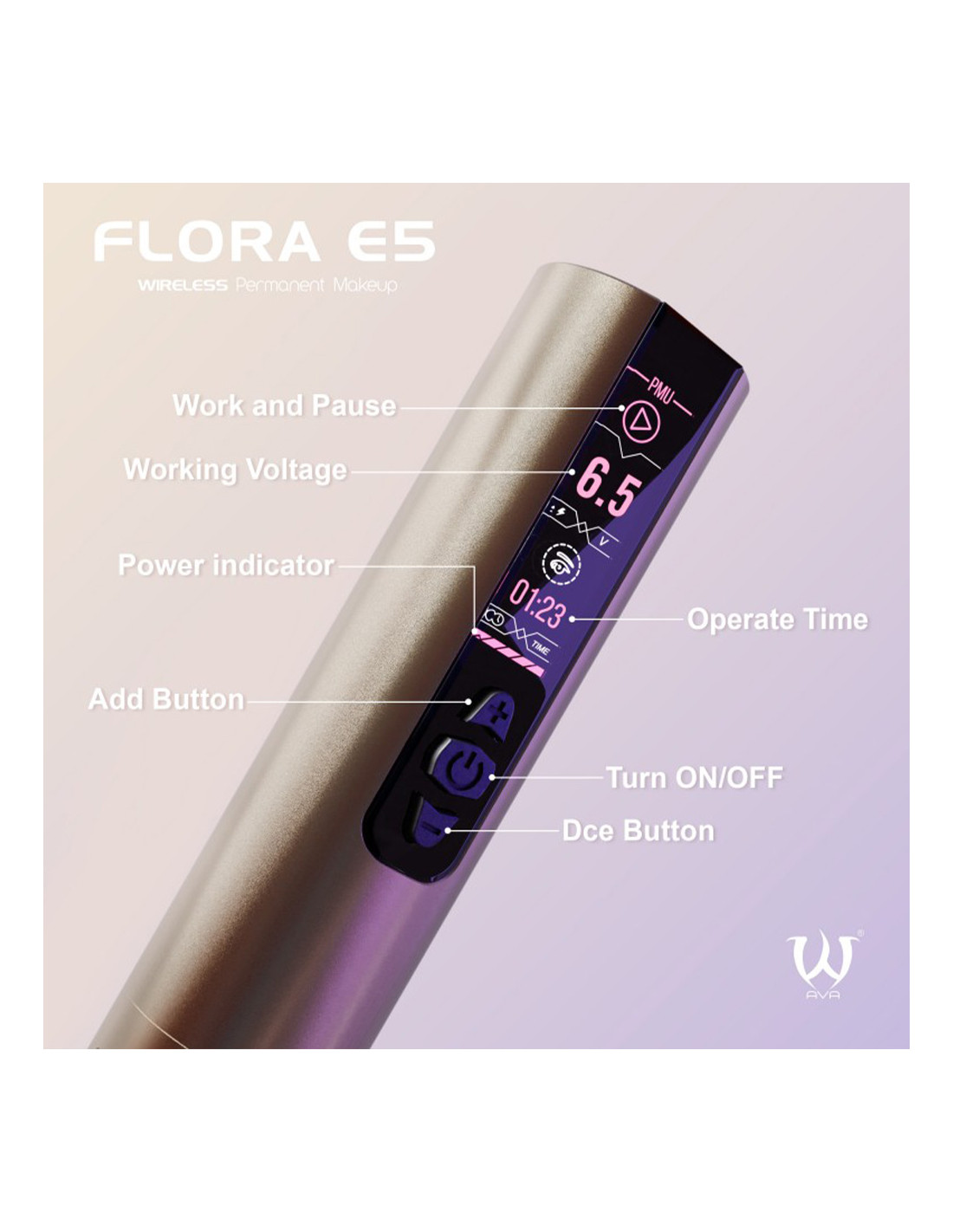 AvaA Soulnova Flora E5 é uma máquina sem fios ultra-leve e ergonómica, criada para trabalhos de micropigmentação (PMU) e pequenas tatuagens que requerem grande detalhe. O seu traço ajustável de 2,0 a 3,2 mm torna-a perfeita para o delineador de sobrancelhas, delineador de lábios, eyeliner, camuflagem de aréolas e desenhos finos.