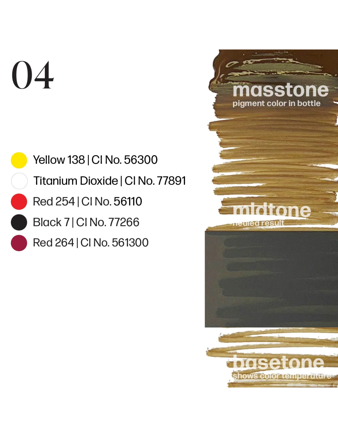 Graças à sua composição, é um pigmento muito fácil de trabalhar, perfeito para criar gradientes naturais, densidades controladas e transições limpas sem saturação excessiva. Pode ser usado sozinho ou misturado com tons mais claros ou mais escuros do conjunto para personalizar totalmente o resultado.
