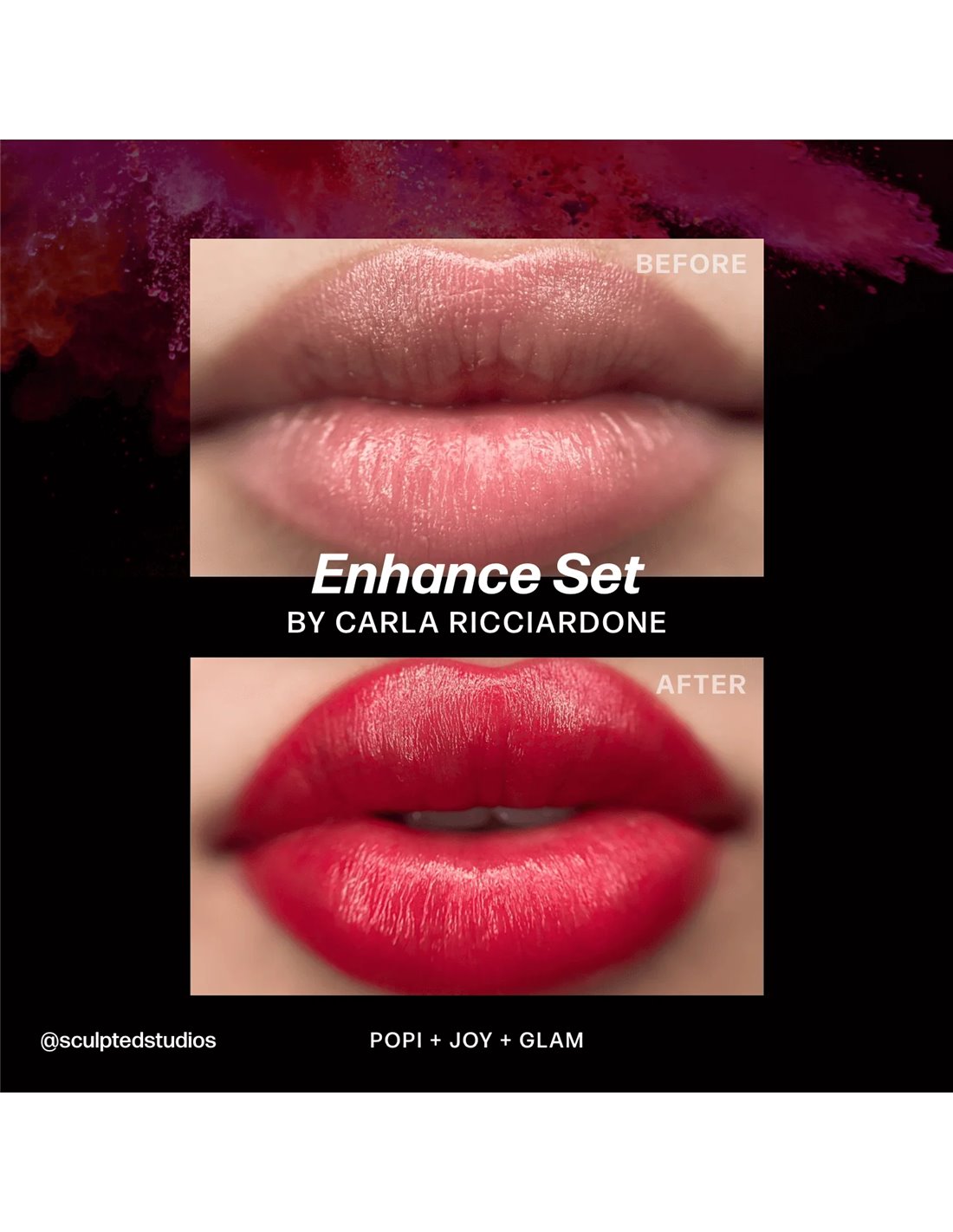 Apresentamos-te o Enhance Set da artista Pro-Team, proprietária do Sculpted Studio e da incomparável Carla Ricciardone. Descobre uma abordagem inovadora para trabalhar com lábios quentes e de tons claros ou utiliza-o como um passo secundário para lábios neutralizados. Esta coleção de tonalidades realça a cor natural das tuas clientes, com uma mistura de cor precisa e uma formulação especializada.